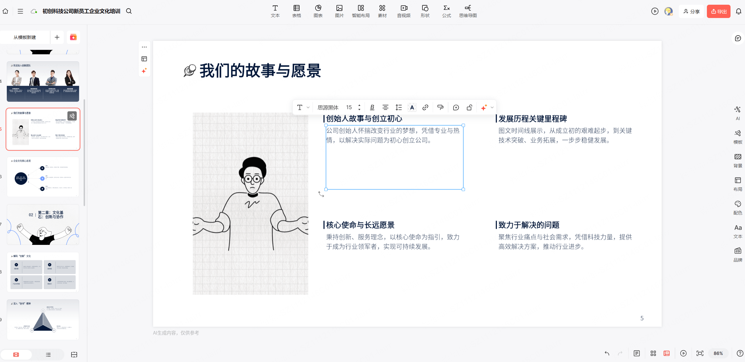 在实际操作中,博思AIPPT将复杂的编辑过程简化成了极其直观的交互。以下是具体的使用步骤: