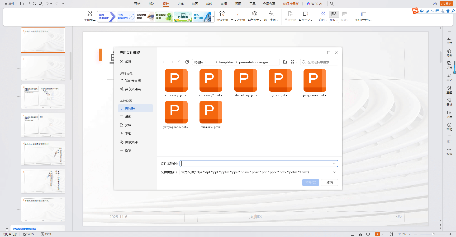 - 导入外部模板:点击文件→选择你下载的母版模板文件,打开后复制母版页面,即可导入新样式