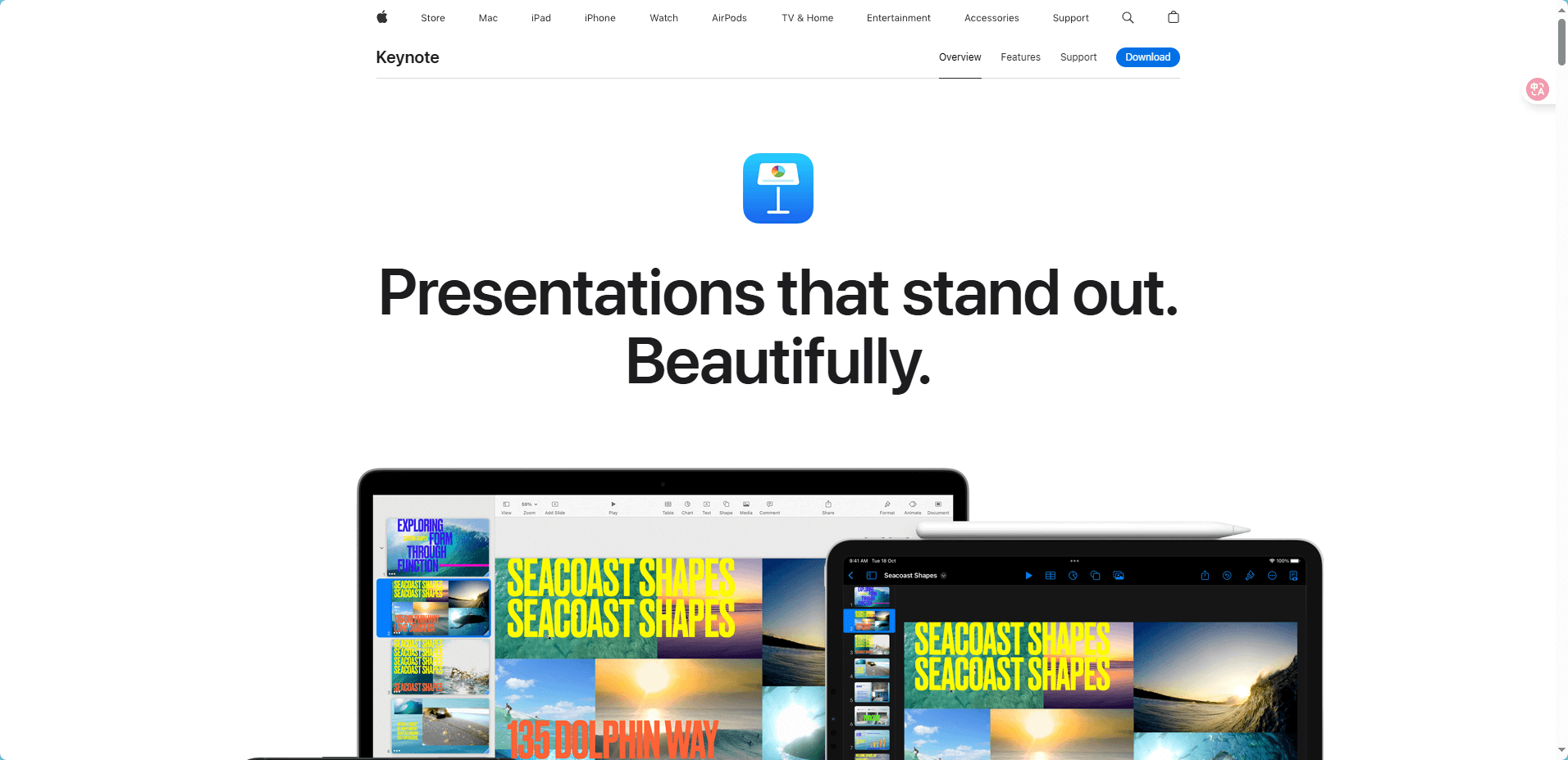 Keynote 是苹果公司旗下的一款专业演示文稿软件,相当于微软的 PowerPoint(简称 PPT)。它是苹果 iWork 办公套件的一部分,支持在 Mac、iPad、iPhone,甚至浏览器上直接使用,是苹果生态中最具代表性的演示工具。