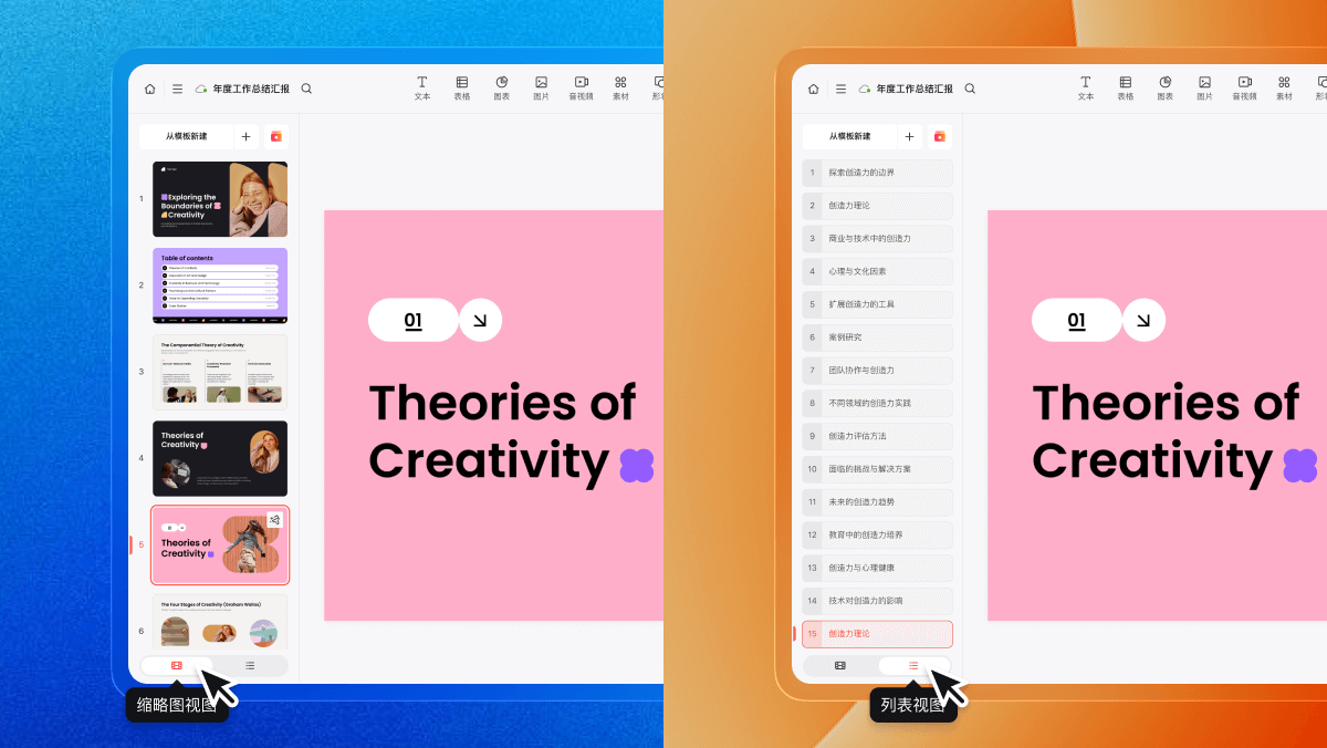 - 新增PPT侧边列表视图展示